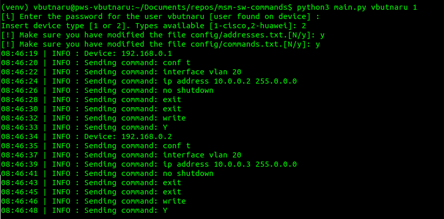 I was often found in the position of configuring multiple switches, and I didn’t find something straightforward that could help me. I created a Python script to simplify the configuration process for Huawei and Cisco switches.
