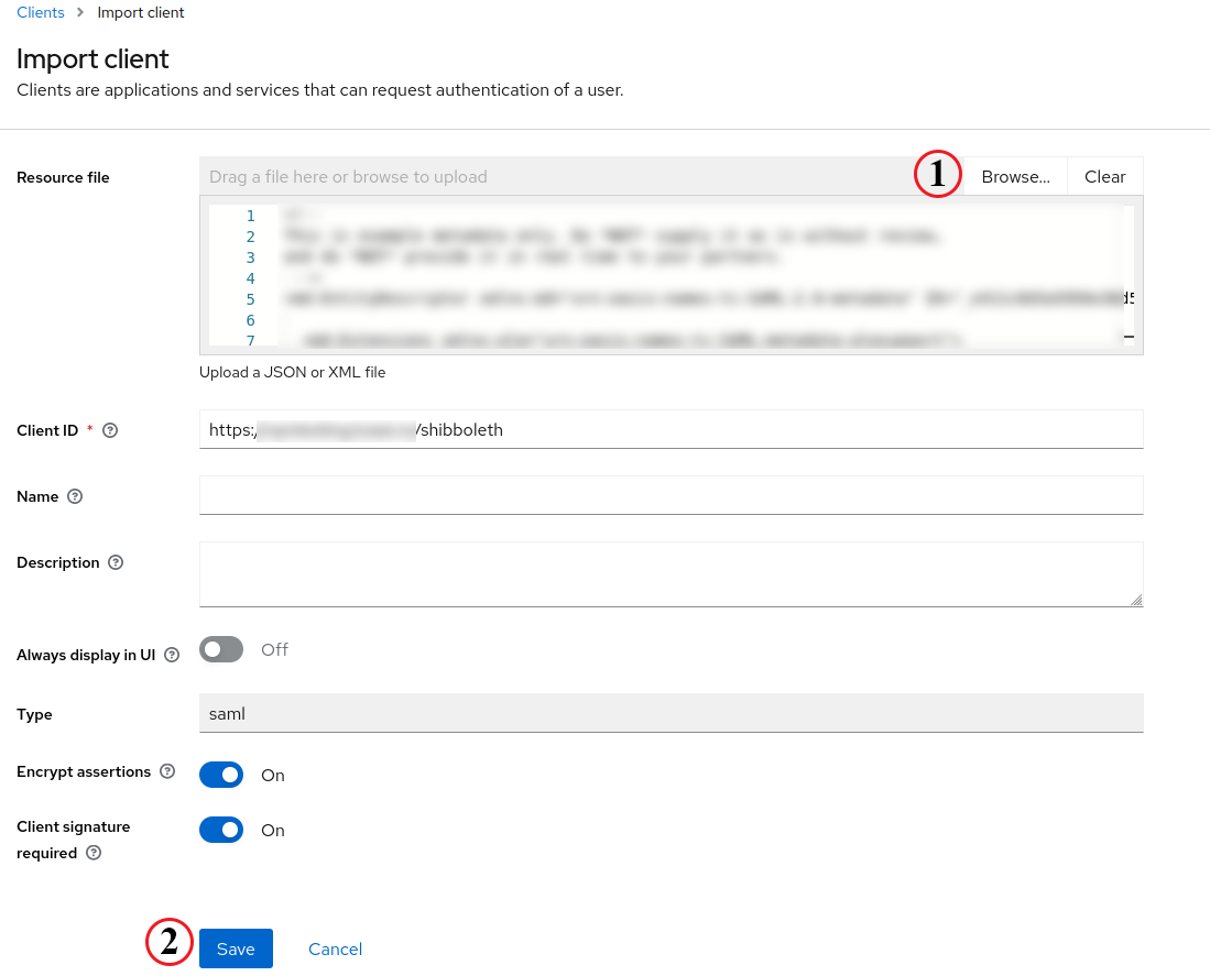 We will upload the Metadata file in the new window by pressing Browse… and save the current config.