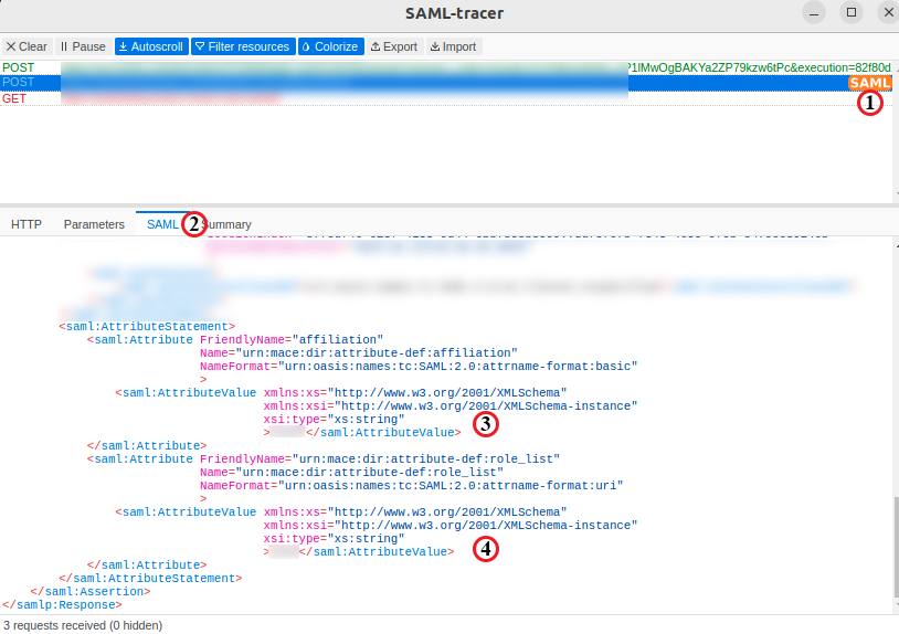 - If, in the SAML Tracer, you don’t find any attributes that you set in the Keycloak, it means that there are some problems regarding the Client Scopes. Check again the configuration in the Keycloak.