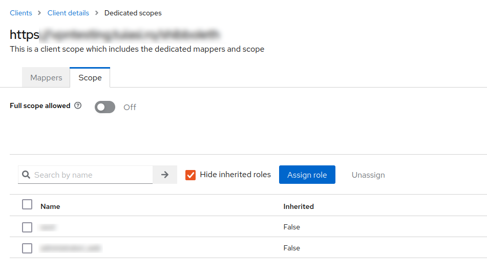 Now, the client knows how to map the attributes, but the client may not be able to access them. Go to Client Scopes, select the single client scope assigned, and from the top menu, select Scope. Here, select all the scopes that you want the client to be able to access.