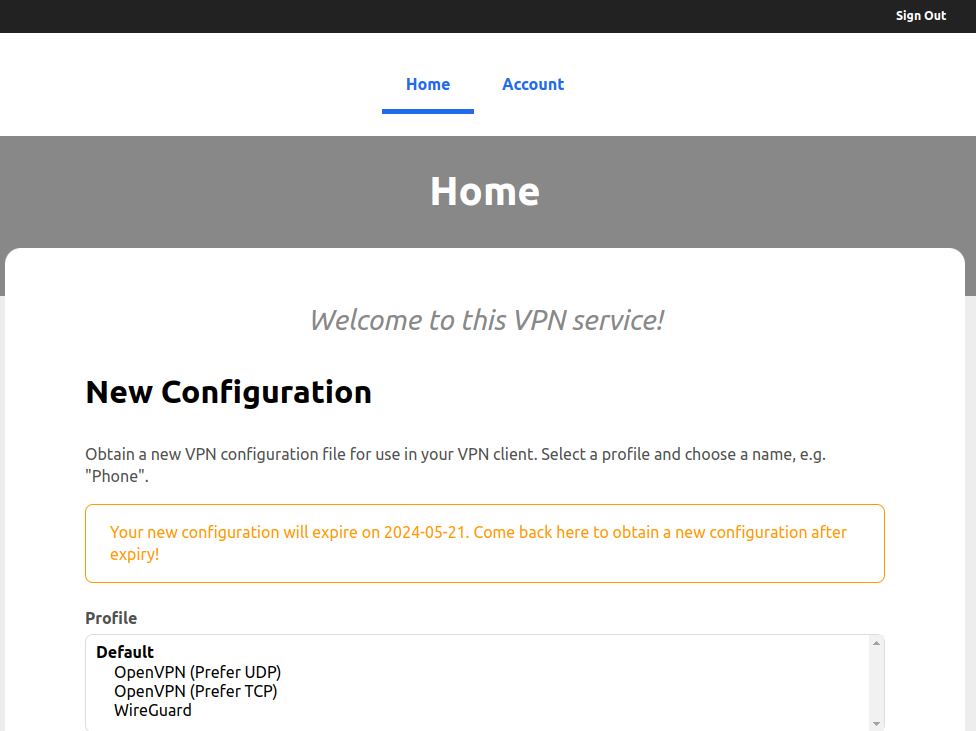 Now, we are all set, and the authentification process should work. Navigate to vpntesting.example.com and try to log in. If the login was successful, the home page should appear.